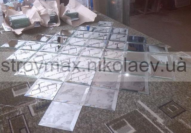 Для зеркальных плиток любого формата используется зеркало толщиной 4 мм. Заметим, что современная керамическая плитка, в любом случае, гораздо толще (8 мм и более). Поэтому разницу в толщине керамической и зеркальной плитки лучше всего компенсировать самым обычным цементно-песчаным раствором, нанеся его подходящим слоем на участок стены, где планируется уложить зеркальную плитку.При необходимости плитку можно порезать обычным стеклорезом. Моется плитка любым средством для мытья стекол. Подробнее: http://stroymax.nikolaev.ua/g13451748-zerkalnye-plitka-panno .Повний прайс на всі типорозміри в розділі ПРО НАС/ПРАЙСИ ,скачати за посиланням: http://storage.ua.prom.st/941209_prajs_zerkalna__a_15.04.17.xls