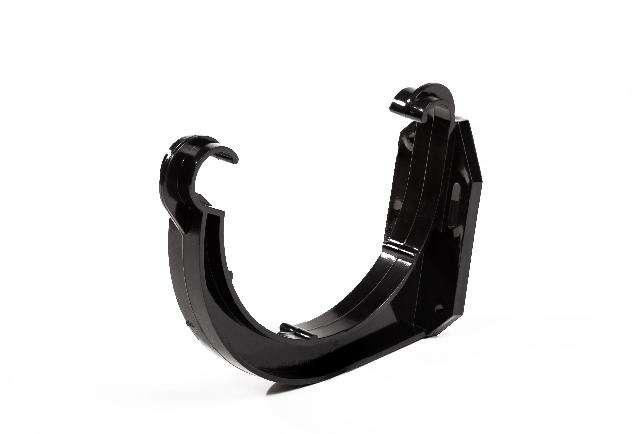 Призначений для кріплення ринви до покрівельної конструкції і завдання необхідного ухилу водостічної системи у цілому. Виготовлений з високоякісного полівінилхлориду методом моноекструзії, що дозволяє попередити втрату кольору протягом строку експлуатації. Використання виключно первинної сировини попереджує розтріскування системи під час різких перепадів температур. Посилена з усіх сторін конструкція дозволяє утримувати вагу до 100 кг одним держаком. Крюки для кріплення ринви з обох сторін дають можливість легко змонтувати систему і, за необхідності, без зусиль замінити ринву. Може експлуатуватися при температурах від -50 С° до +50 С°. На відміну від металевих, пластиковий держак водостічної системи, може ескплуатуватись поблизу солоних водойм або промислових підприємств без шкоди для матеріалу. Монтується до лобової дошки на 3 покрівельних саморіза. Відстань між держаками має бути не більше ніж 50 см, або 20 см до краю лобової дошки. Для попередження застою води у системі і забезпечення ефективного відводу дощової води, під час проведення монтажних робіт, слід організувати ухил ринви у напрямі зливу води через водостічну лійку. Величина нахилу повинна складати 3-5 мм на 1 метр погонний.